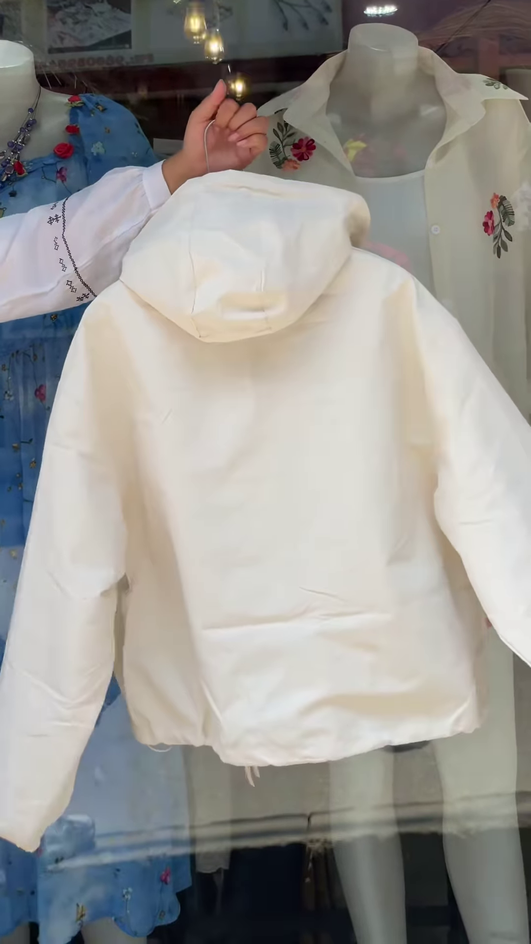 + Free ShippingStep into boutique charm with this collection of Hooded Zip-Up Jackets, styled in a store-window setting with layered necklaces and floral-themed backdrops. Each jacket features a zip front, contrast hood lining, and clean silhouette—perfect for folded stacks, lifestyle edits, or coordinated outerwear drops. Available in Orange, White, and Purple variants. 🧥✨