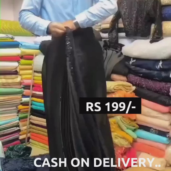 Black Georgette Solid-Plain with Tassels Party Wear Saree with Unstitched Blouse