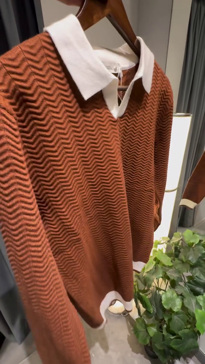 Add this Classic Black Textured Knit Sweater with White Collar to your collection and step out in refined, effortless style this season!