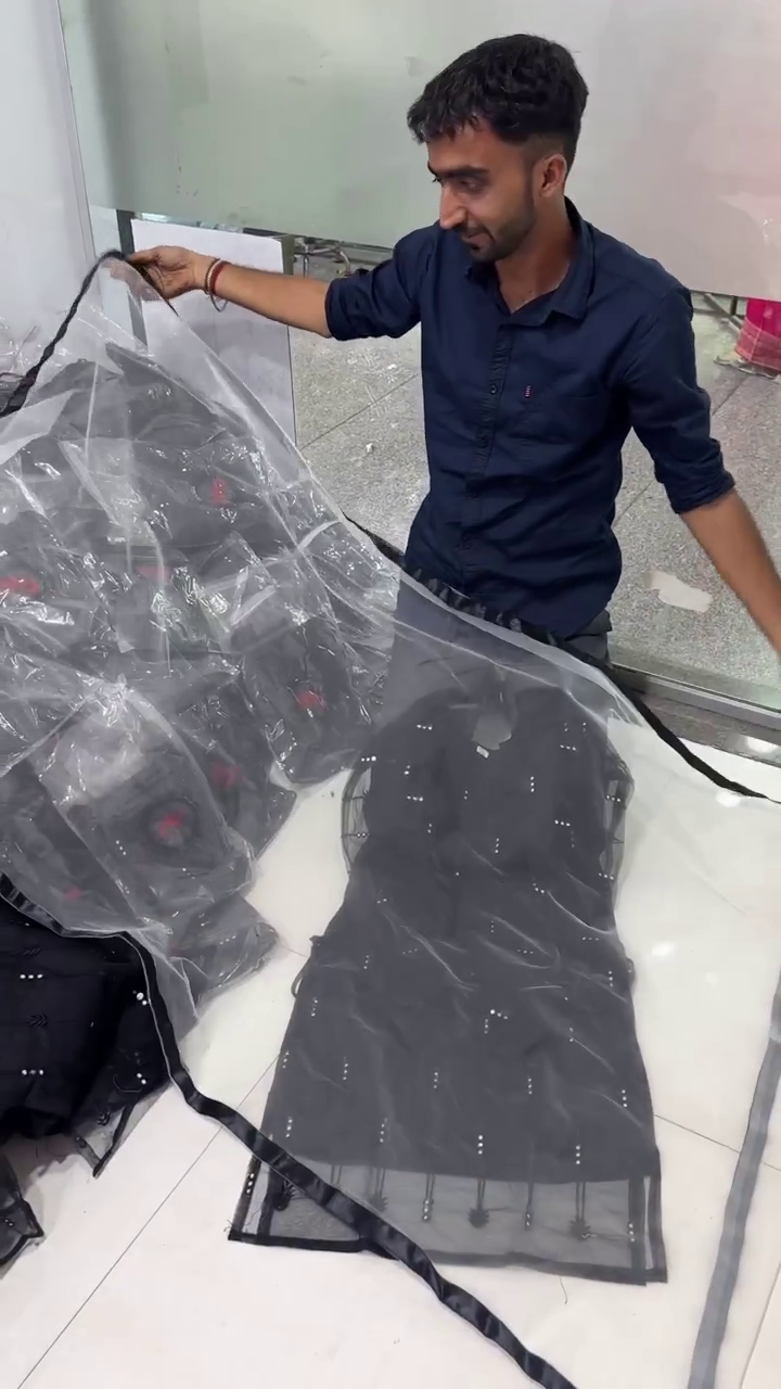 Turn heads with this stunning black sheer kurti set, designed for modern elegance and sophistication. The kurti features a lightweight net fabric with delicate sequin embellishments that add a touch of sparkle to your look. The full-length sheer sleeves bring a graceful charm, while the inner lining ensures comfort and coverage.