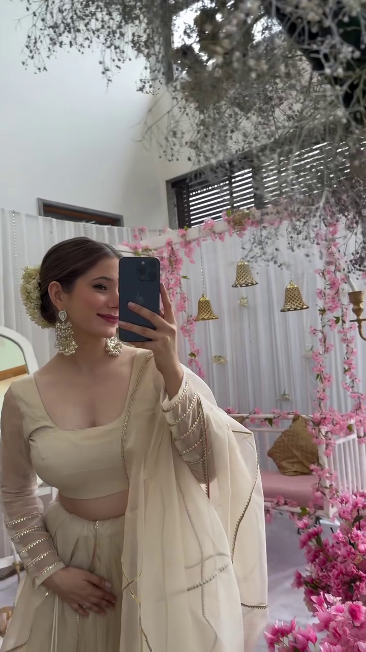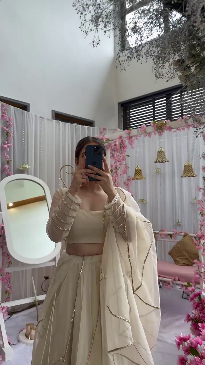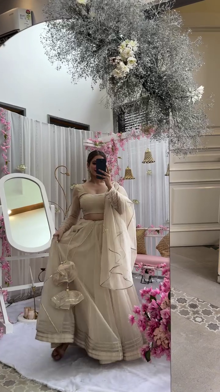 Green Skirt Georgette Bralette Raw Silk Cape Organza Set With Puff Sleeve