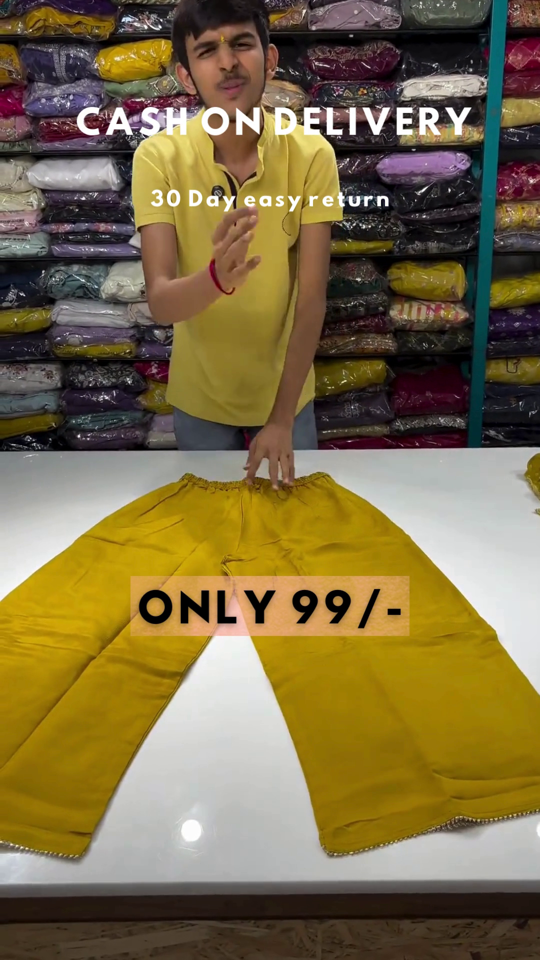 - Comes with a pair of straight cotton pants with organza at its hem.