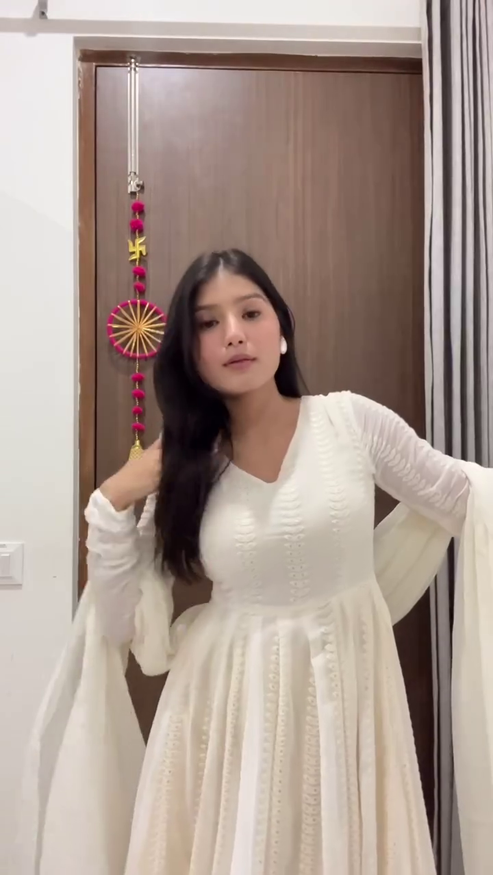White Ethnic Motifs Embroidered Chikankari Anarkali Kurta & Dupatta